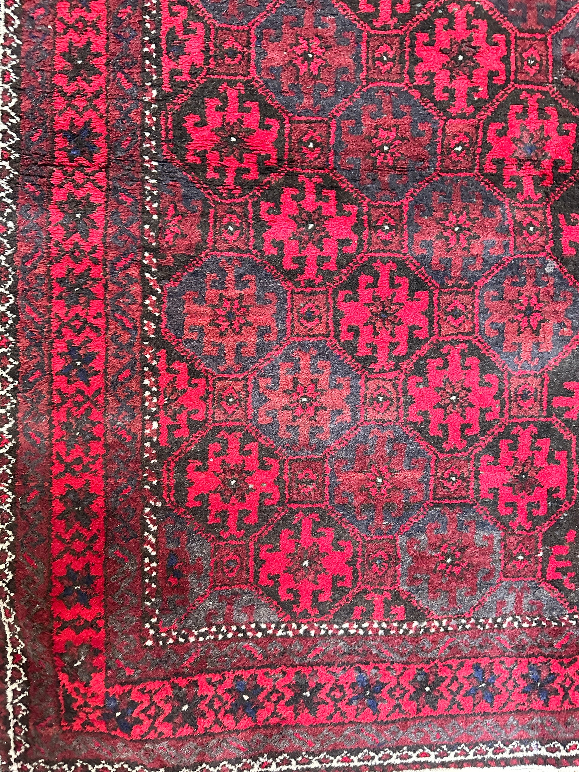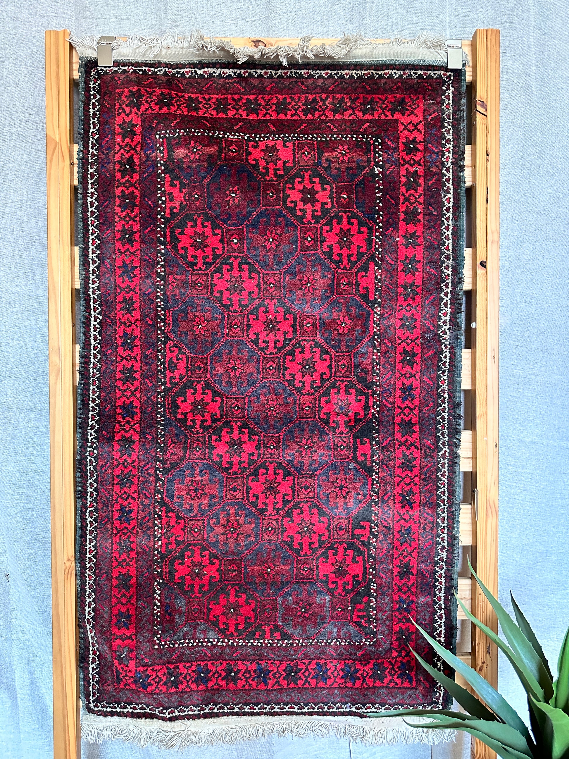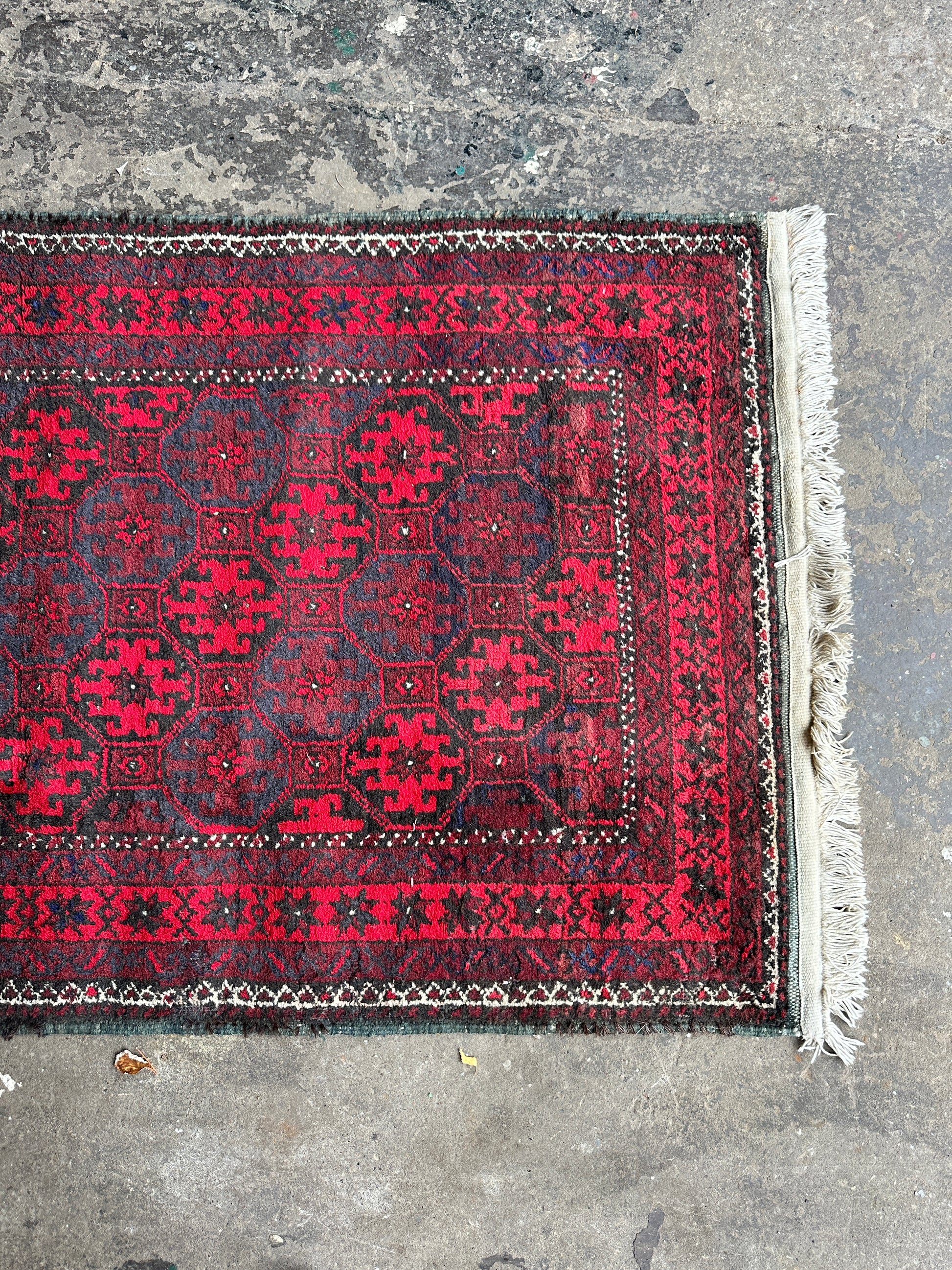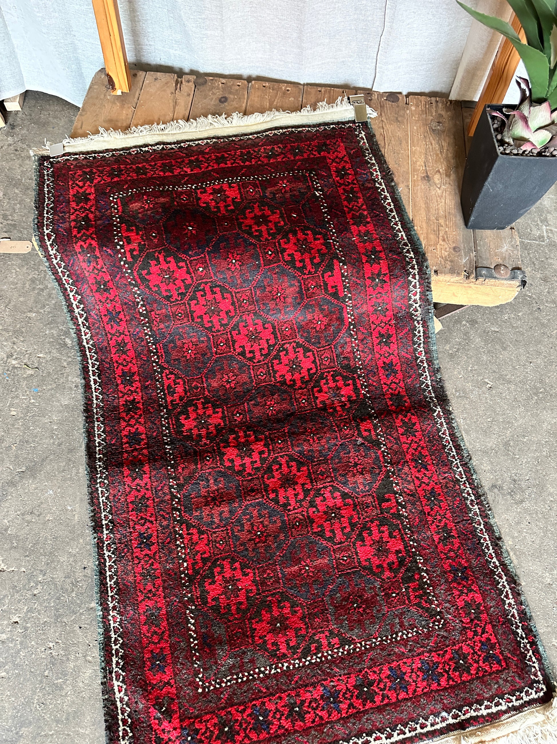 Antique wool Afghan Bokhara rug - no thinning or hole but will probably need a clean. Bring your home to life with a pop of red