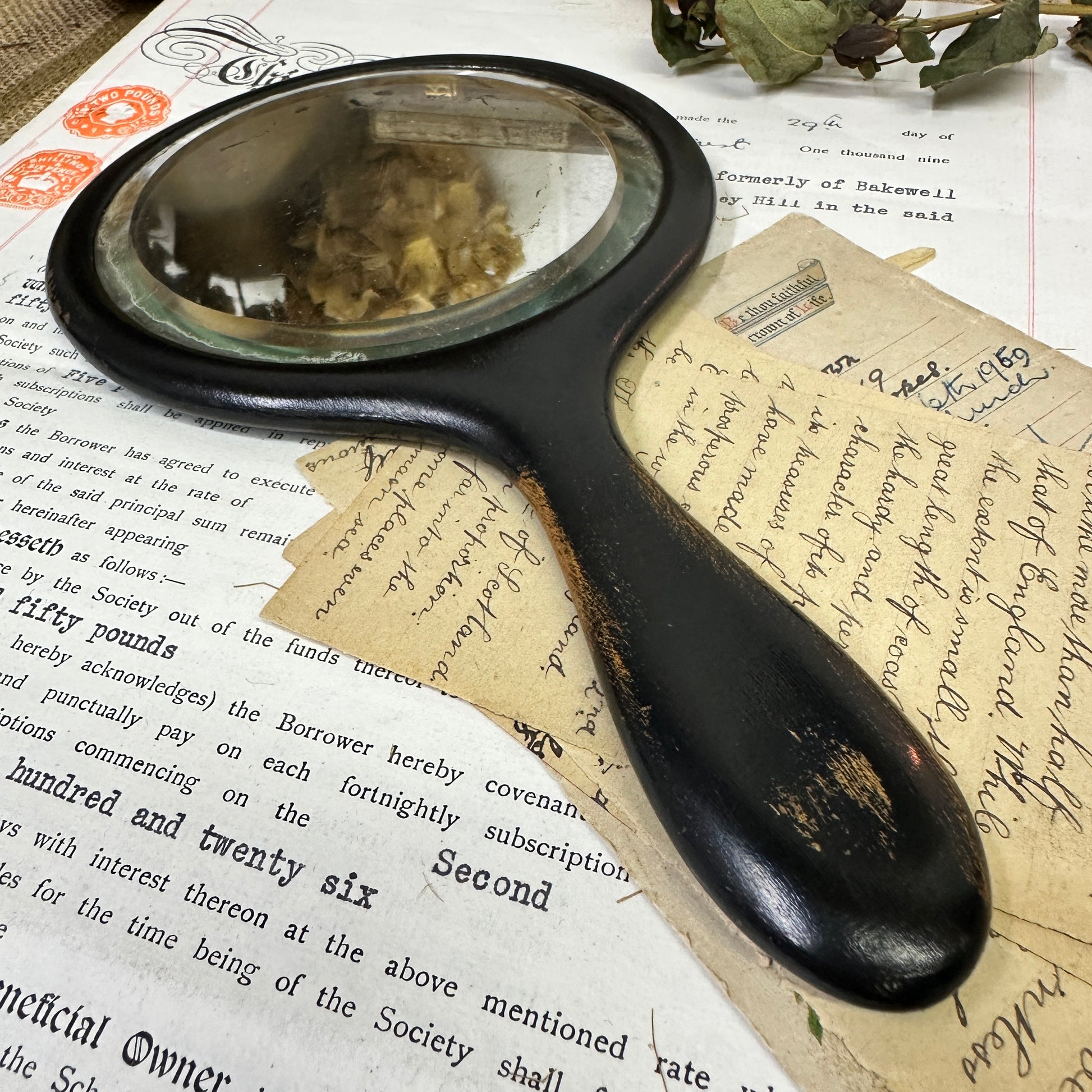 This is a very simple beautiful handheld ebony Victorian mirror. Beautiful foxing to the glass expectant of age please see photographs. This would make stunning gift to a loved one