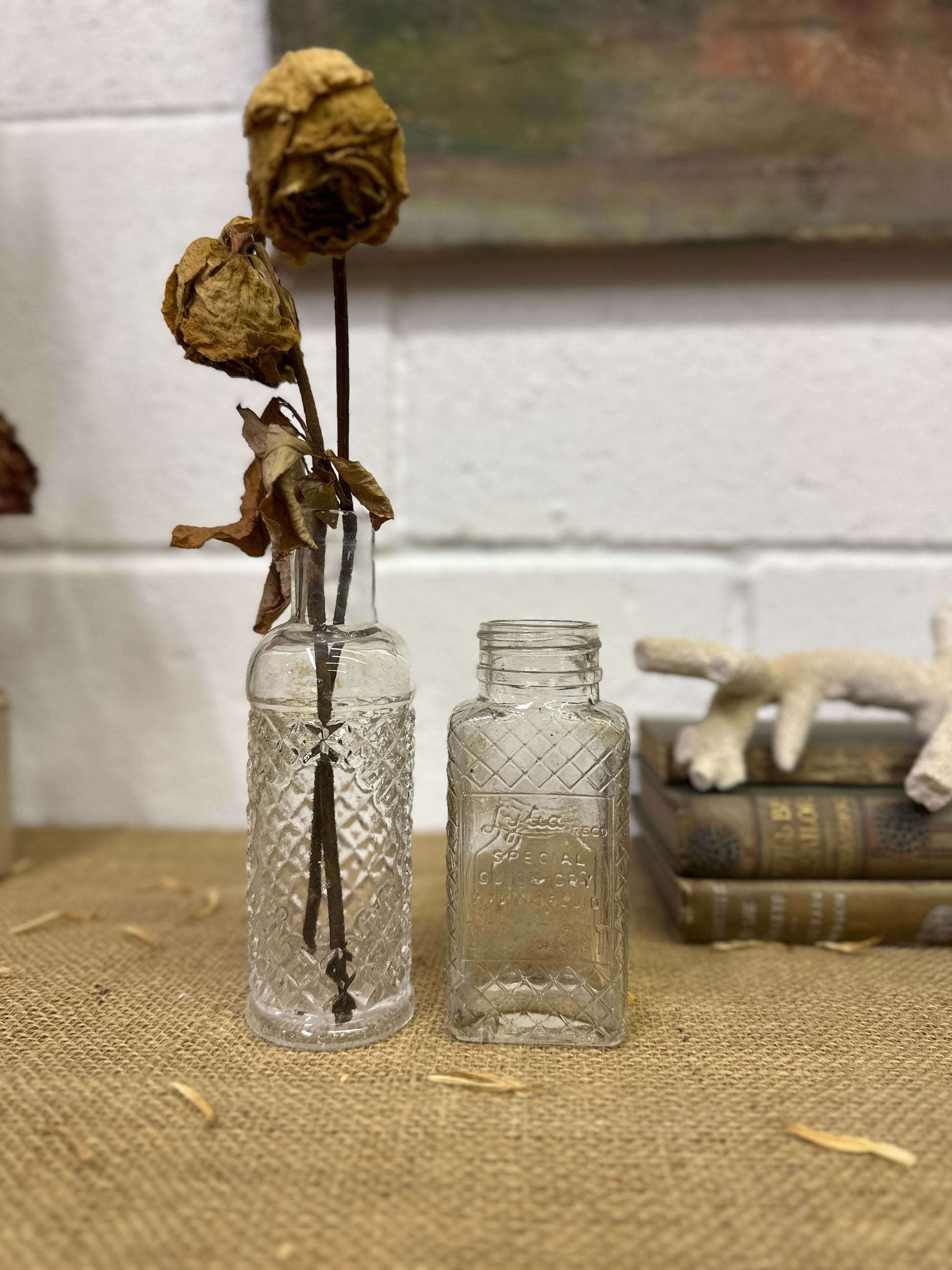 Beautiful pair of antique bottles the perfect table decor or stem vases