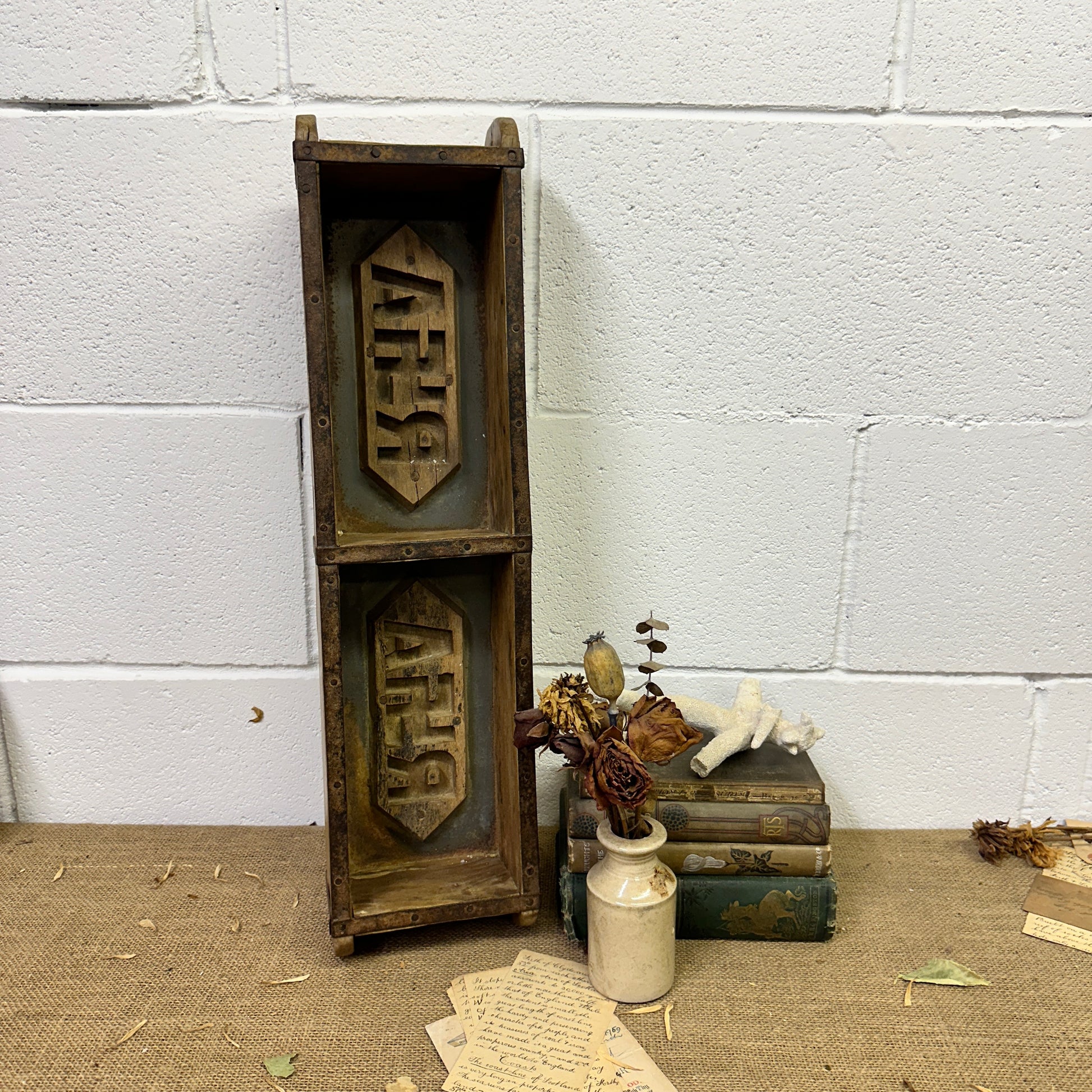 So many different possibilities!! The little chap can sit flat on a surface for bottles, cosmetics, brushes or kitchen utensils. He can stand on end & wall mounted to create little shelf to hold precious keepsakes. These are fabulous for holding herbs on your windowsill or decorate your table by adding some candles.