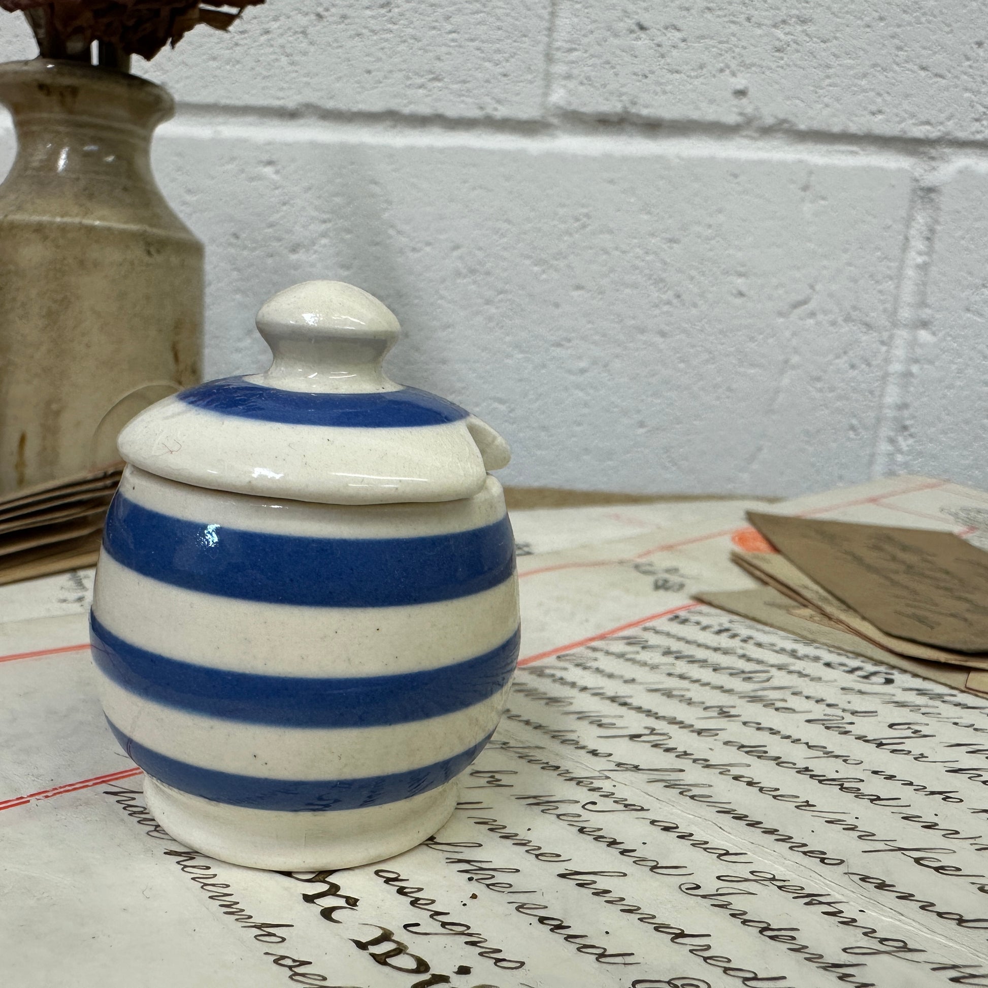 Striking blue & white striped Cornish ware mustard pot item that would make a beautiful addition to your home. This much loved and iconic pattern would sit happily in any room