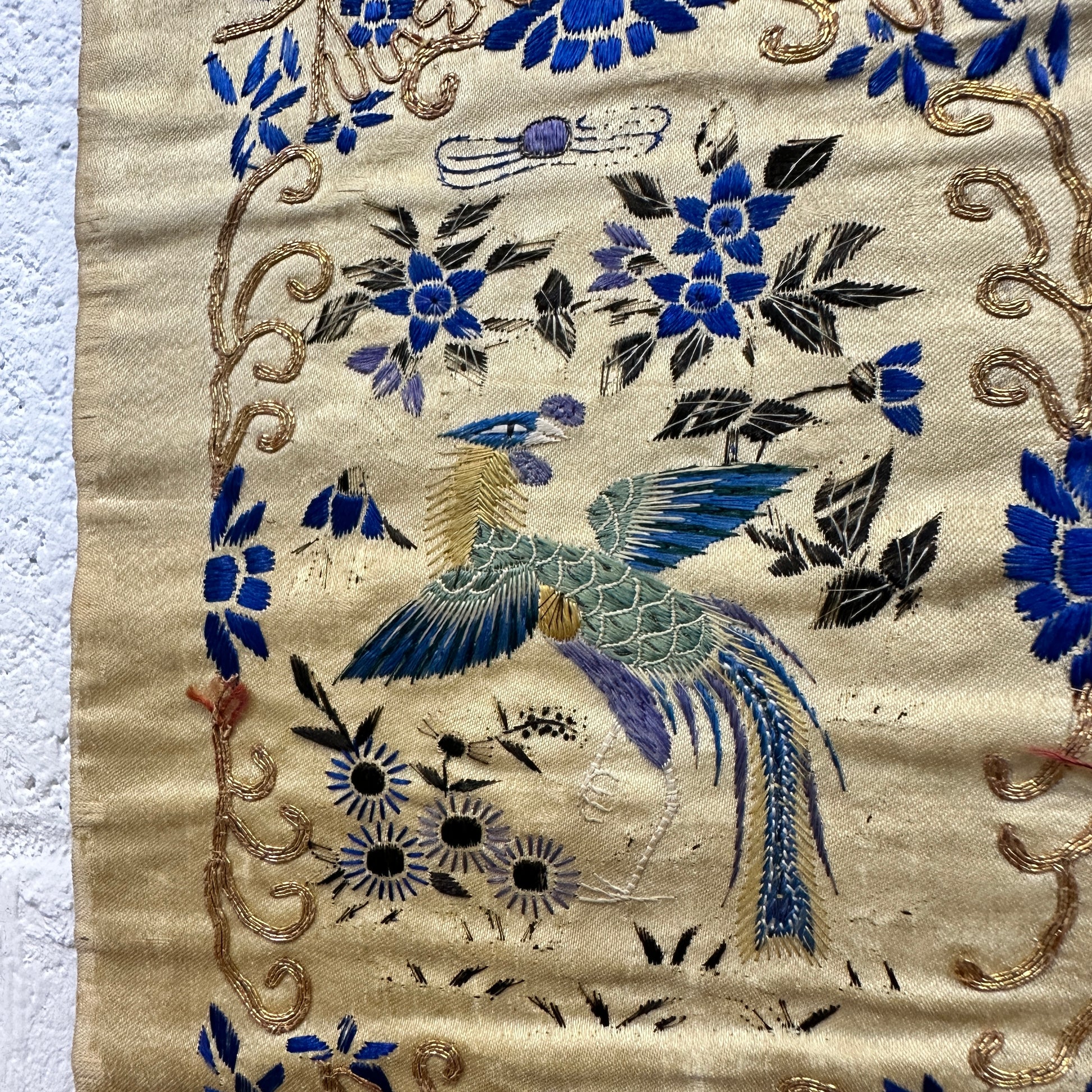 embroidered onto a yellow silk. Some damage & staining but it doesn't distract from there beauty please see see the images