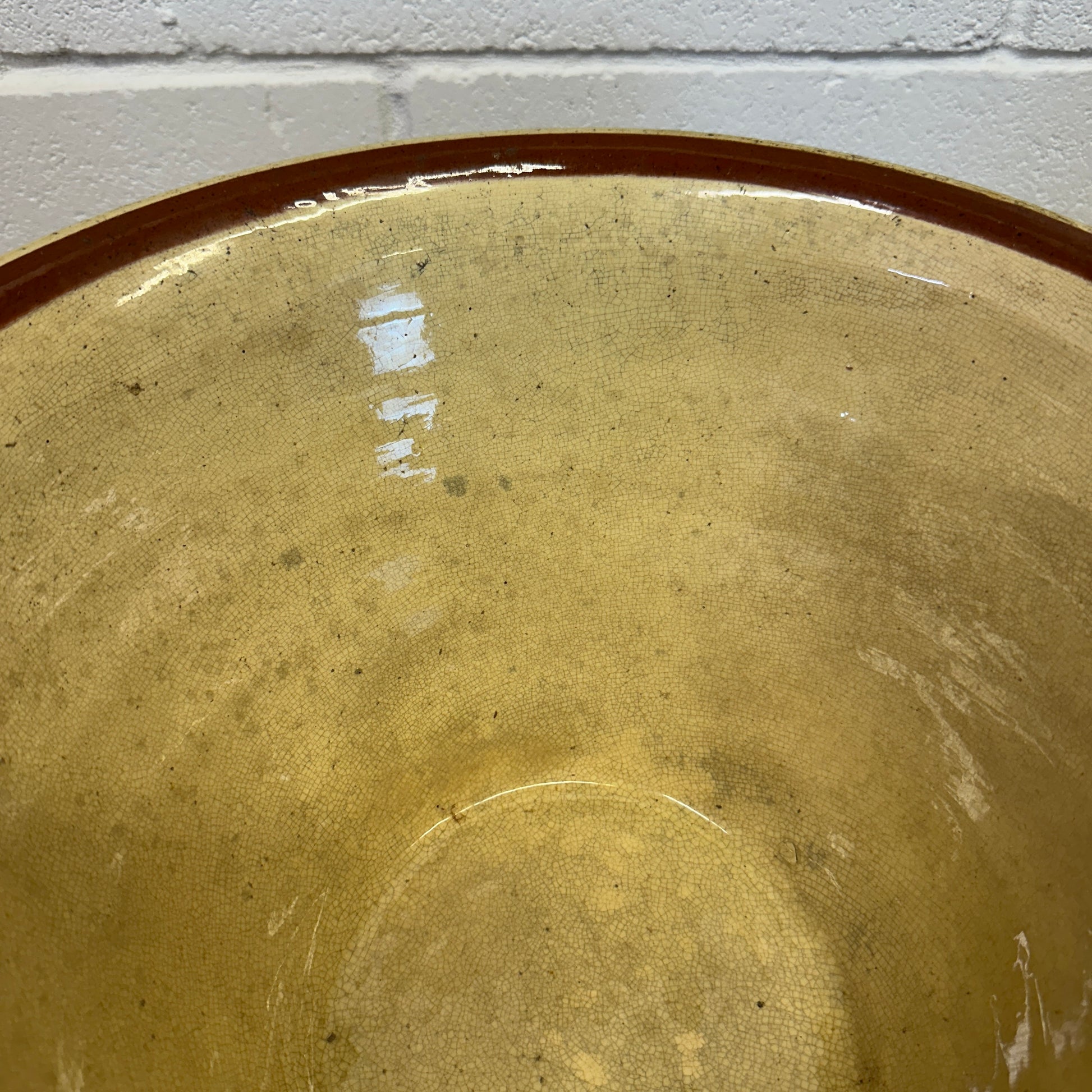 In great condition with buttermilk coloured glaze on the inside. In a previous life this would have been used for milk or salting meets. In a modern home these are great for serving food, storing fruit on the counter or standing on a hall table