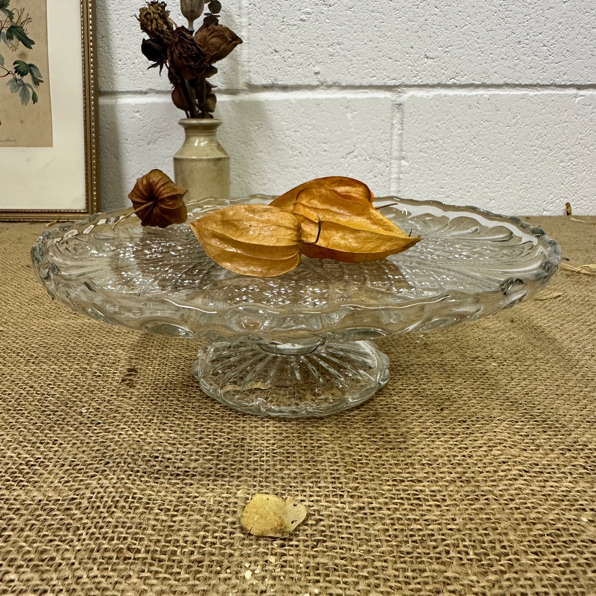 Low Pressed Glass Cake Stand