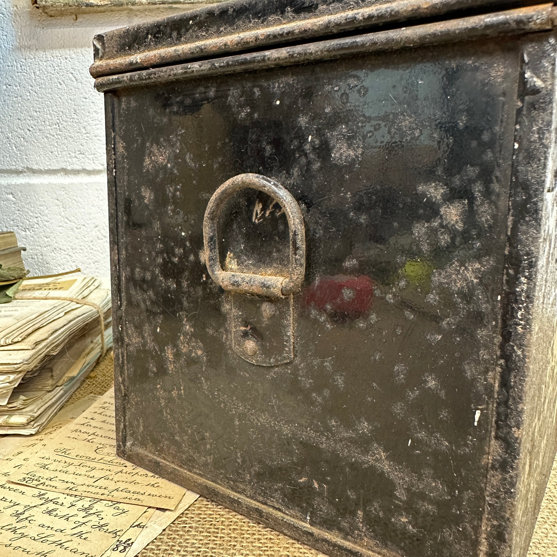 The chippy paint on this beautiful tin adds an endless amount of character. We absolutely LOVE this item