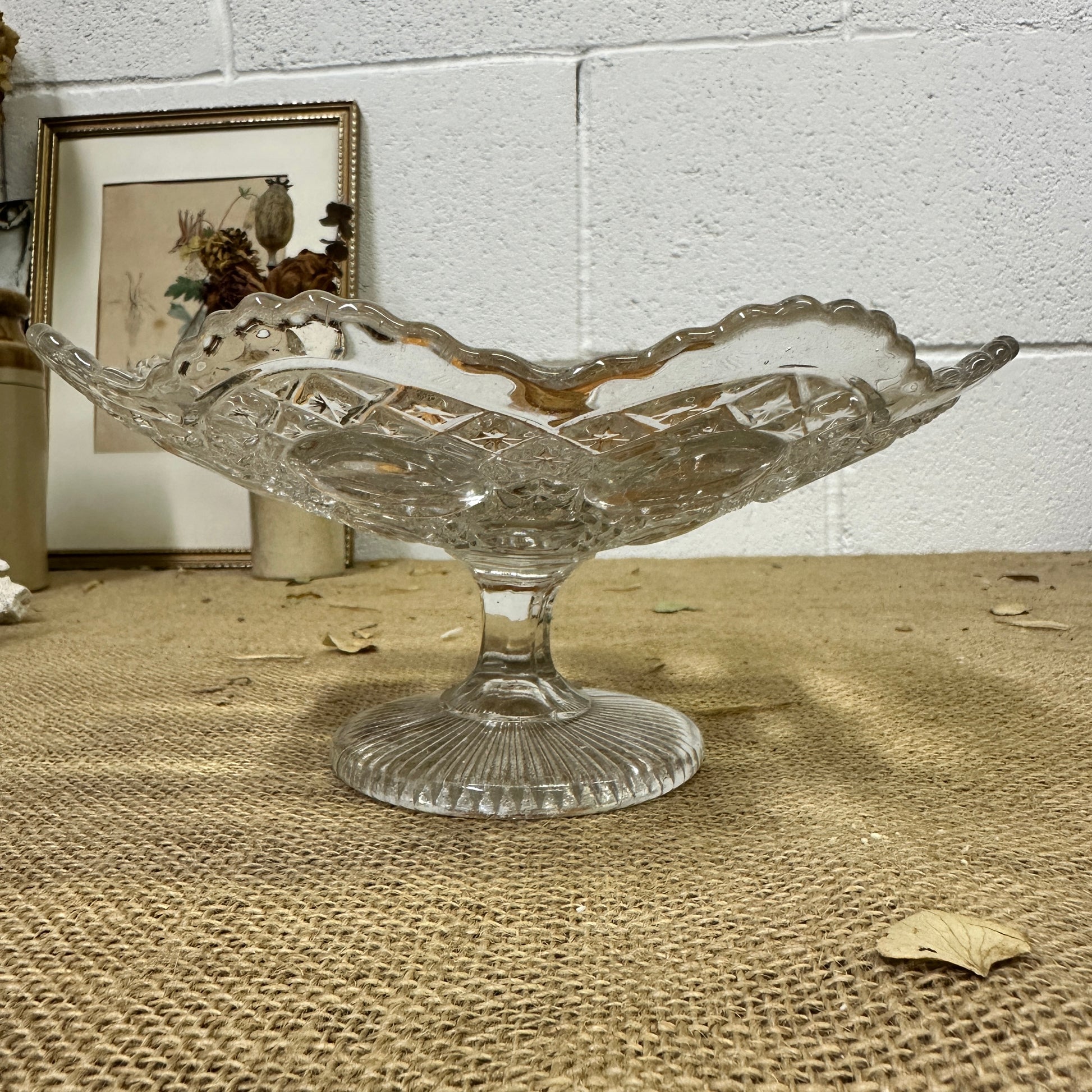 Ruffled Edge Glass Cake Stand Bowl