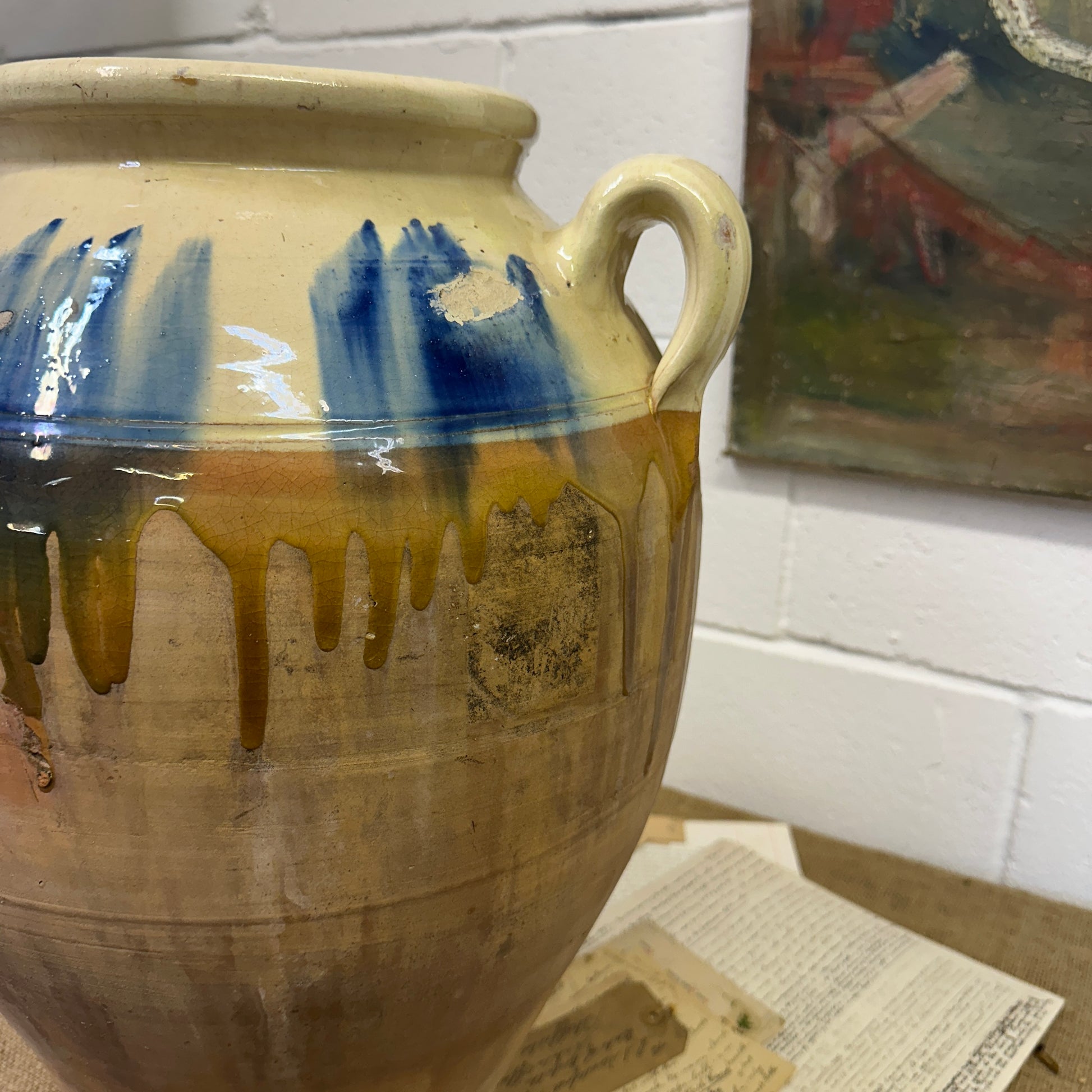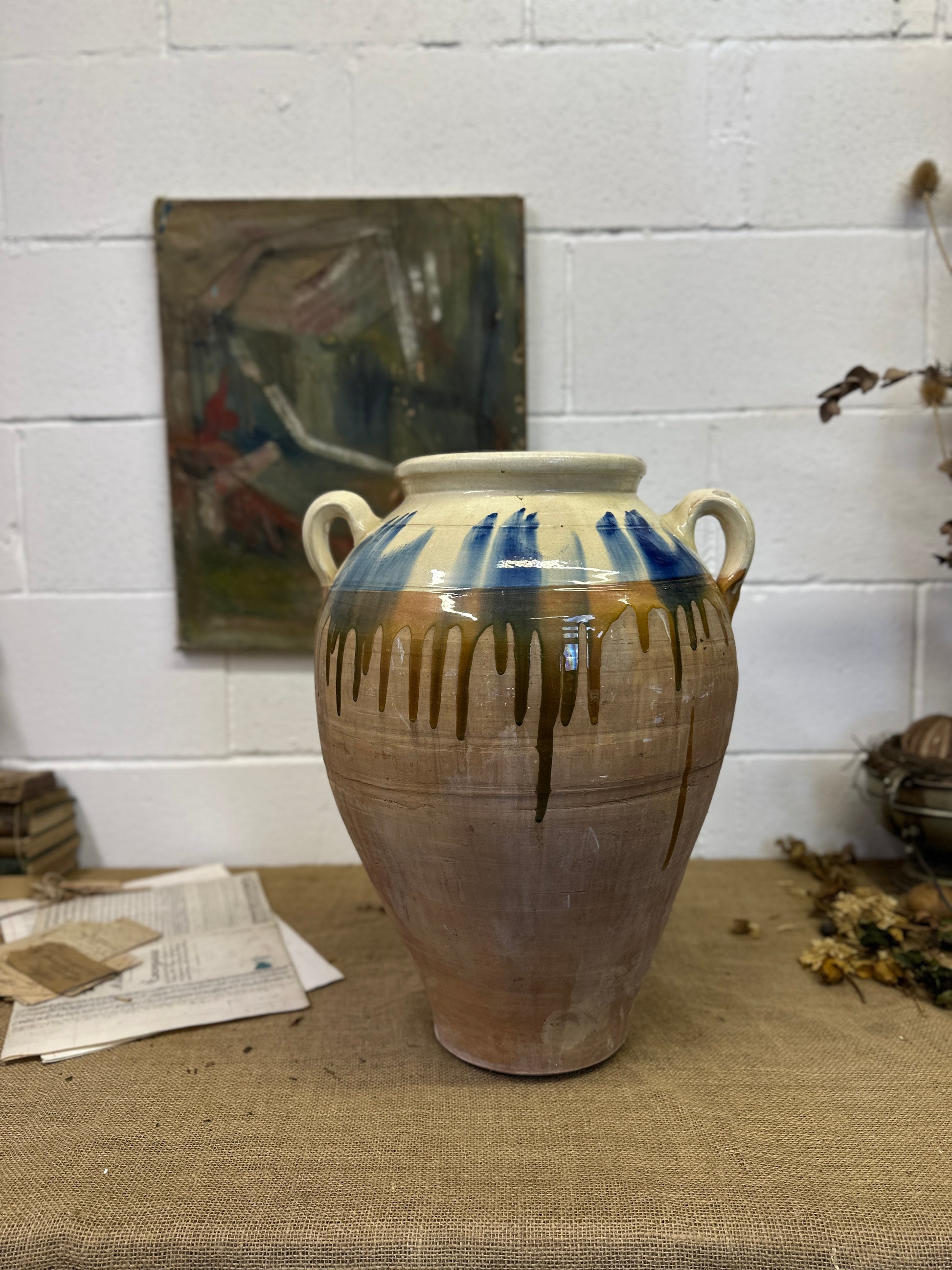Stunning large Mediterranean Olive oil Amphora jug with beautiful drippy glaze. This is a fantastic piece that would look fabulous in your home