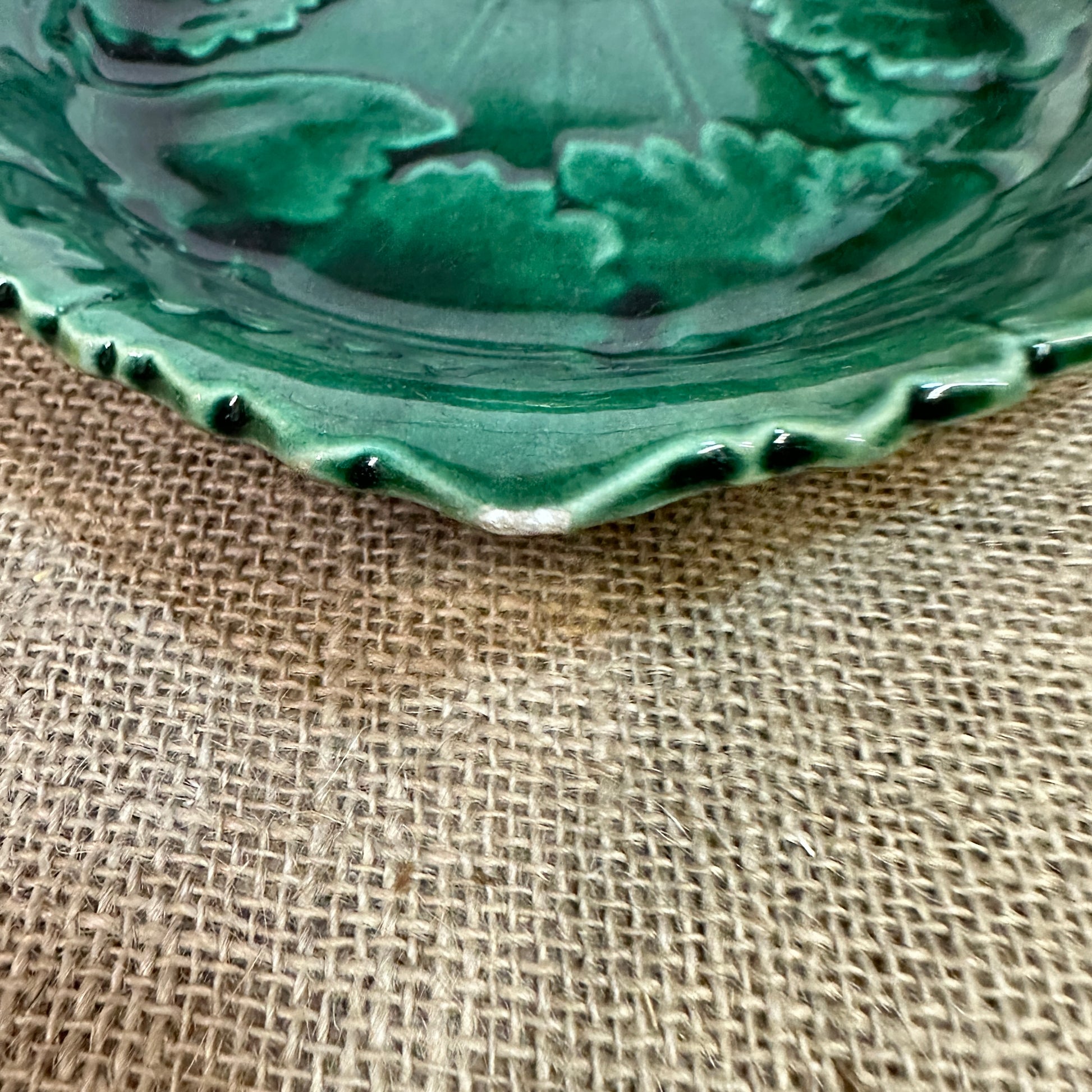 This is a very desirable Cabbage ware Serving Dish. Stunning majolica ware glaze & details