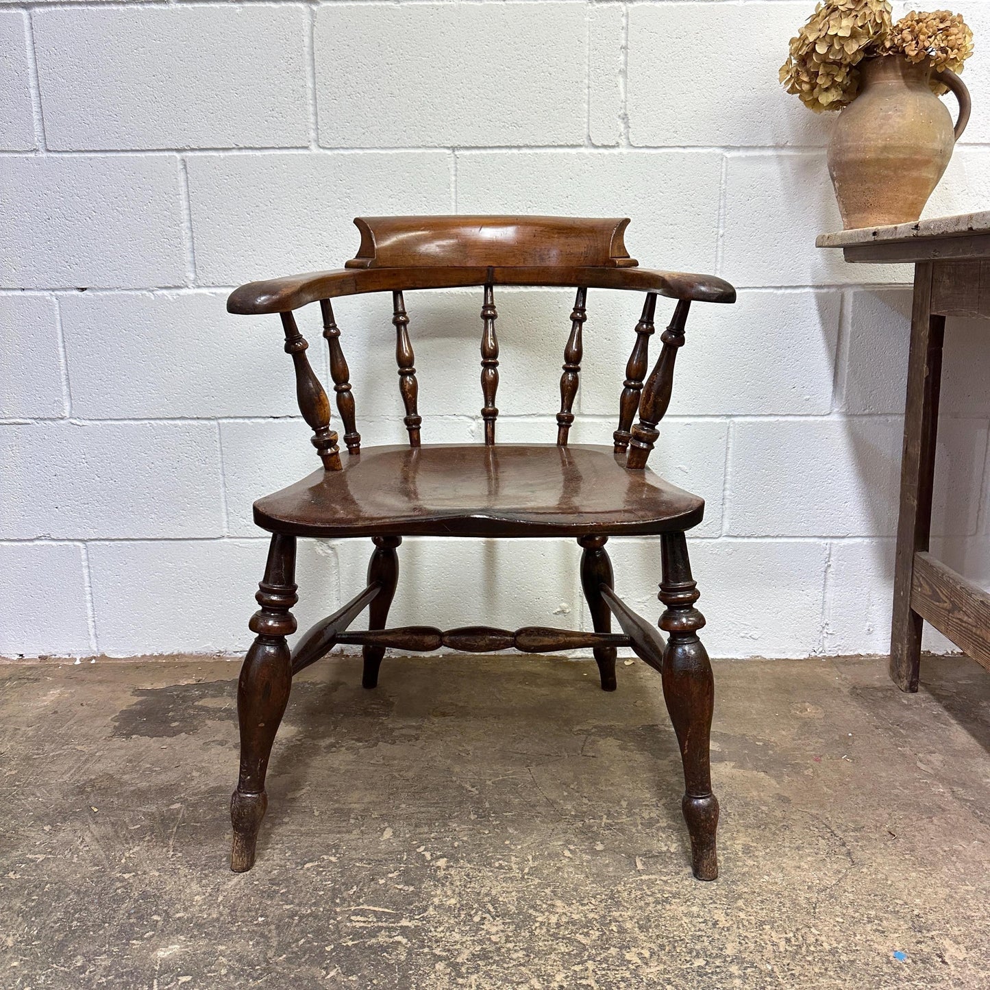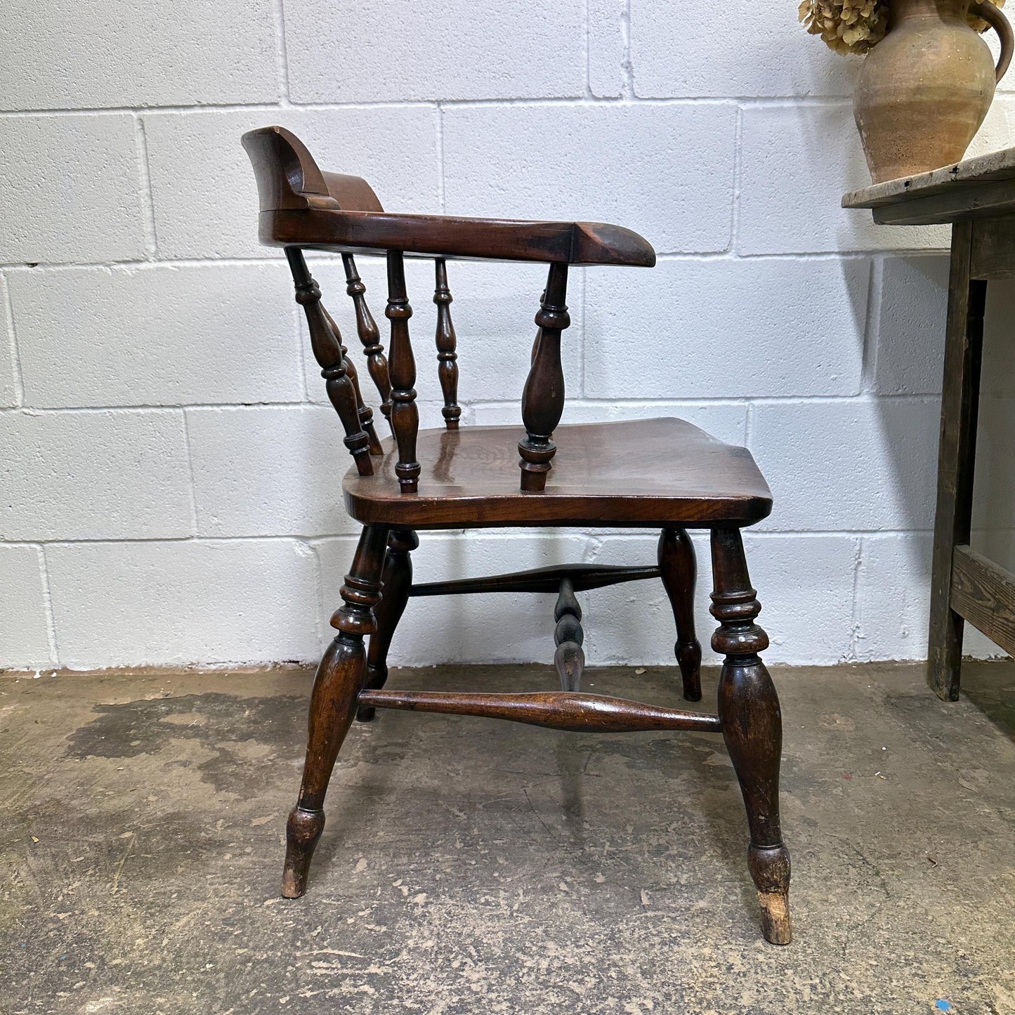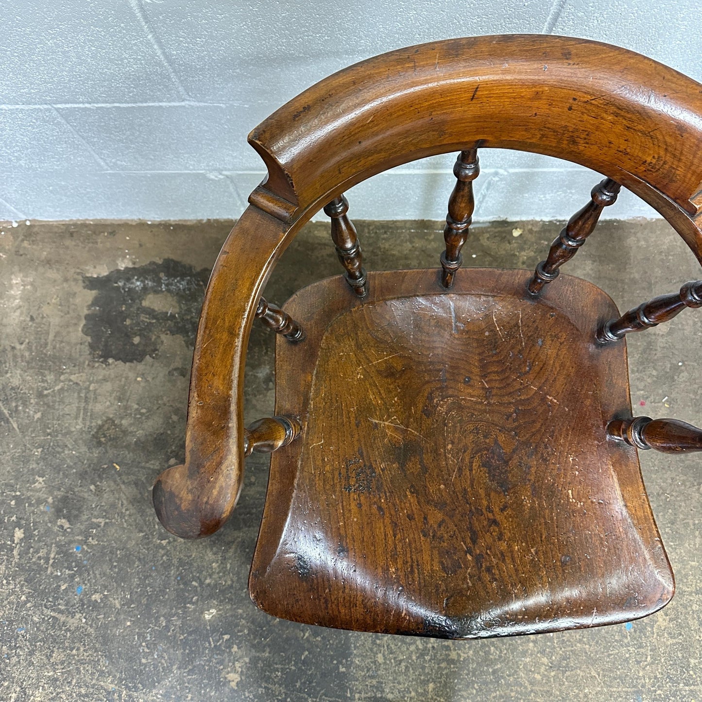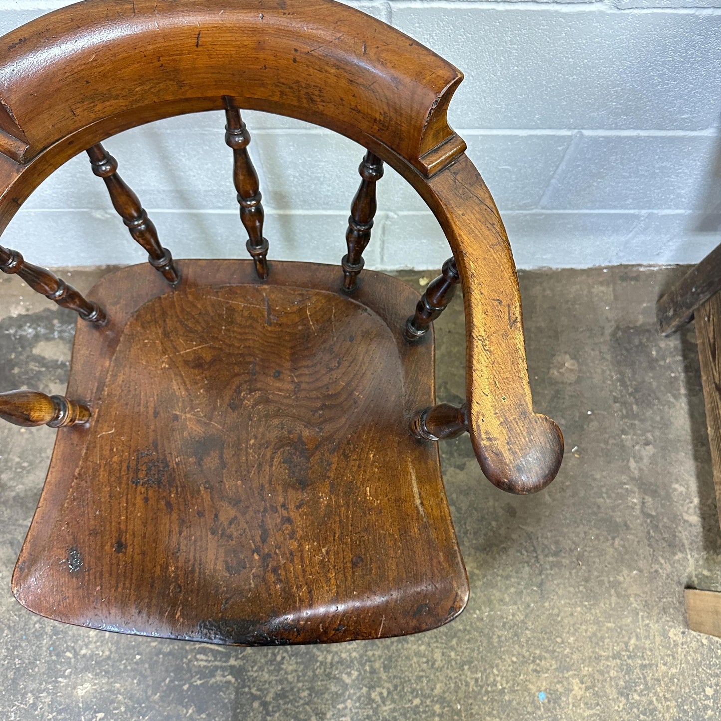 Beautiful late 19th Century oak and elm Air Ministry Captain’s Chair or Smokers Bow Chair
