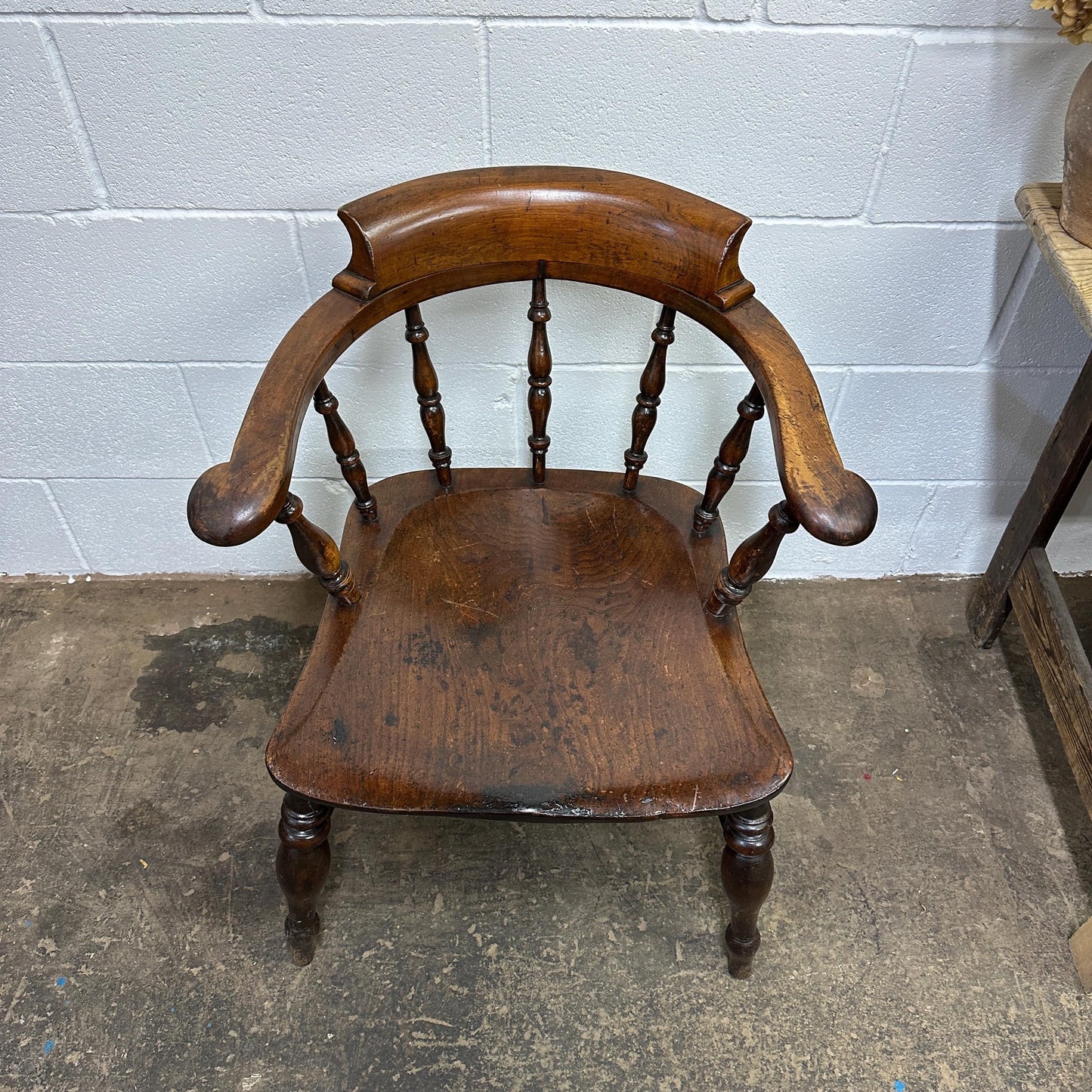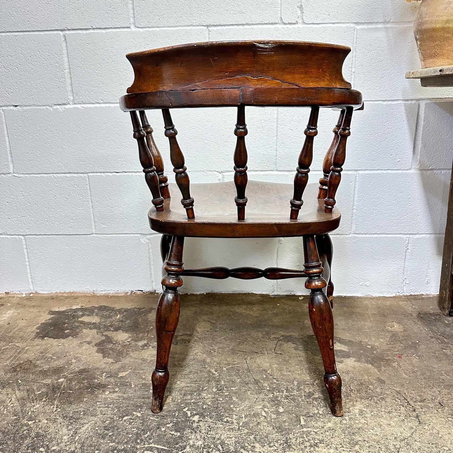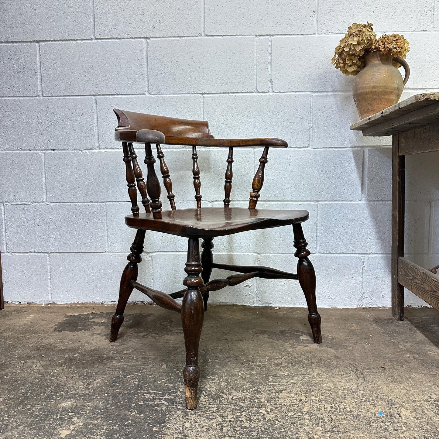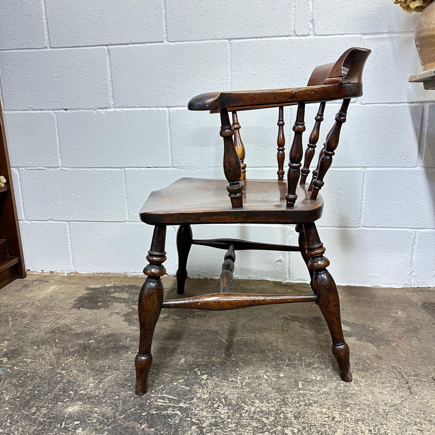 Beautiful late 19th Century oak and elm Air Ministry Captain’s Chair or Smokers Bow Chair