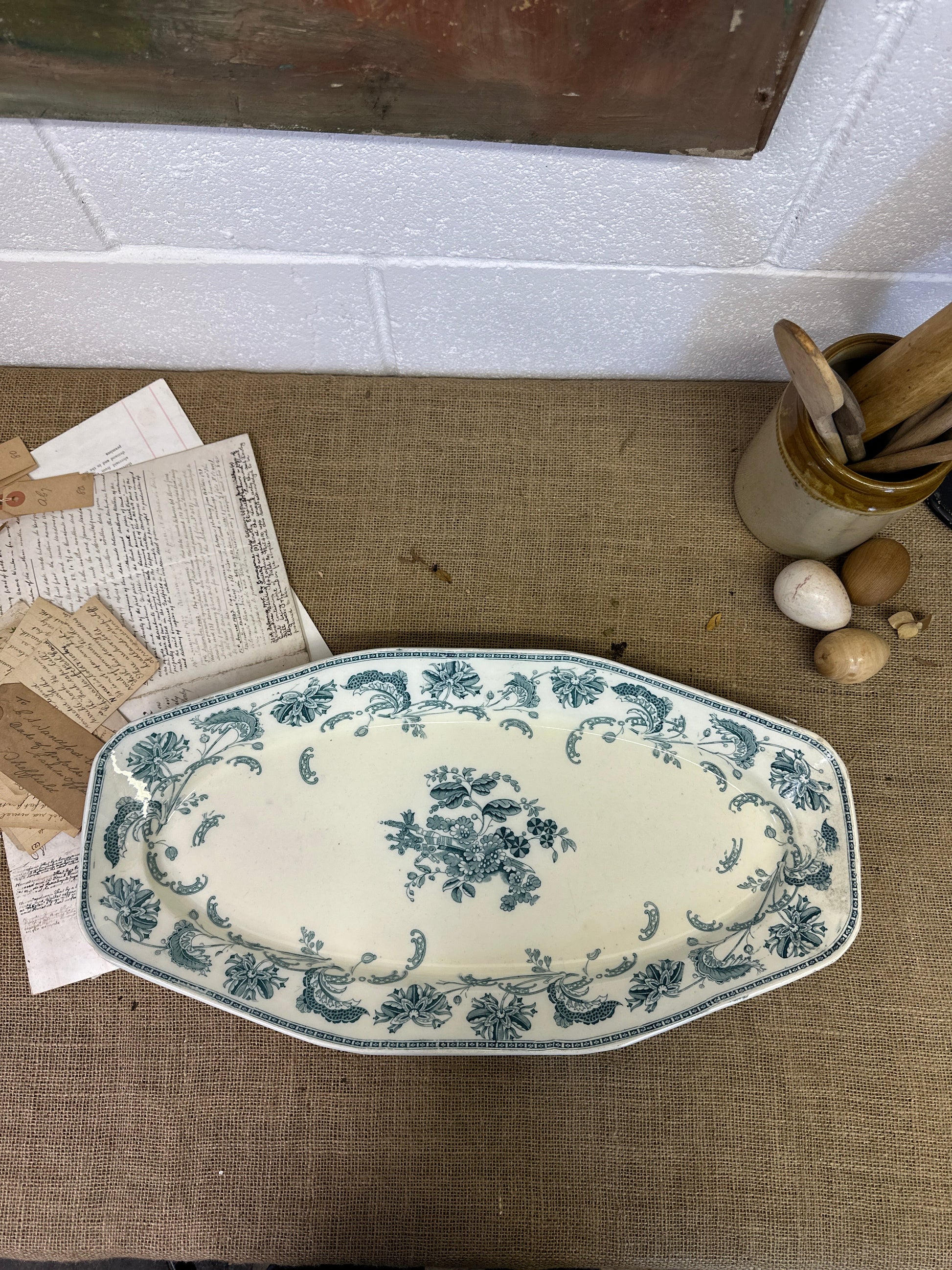 This is a beautiful large Victorian platter made by Powell Bishop & stonier cia 1878. Decorated in a light blue pattern named Leicester