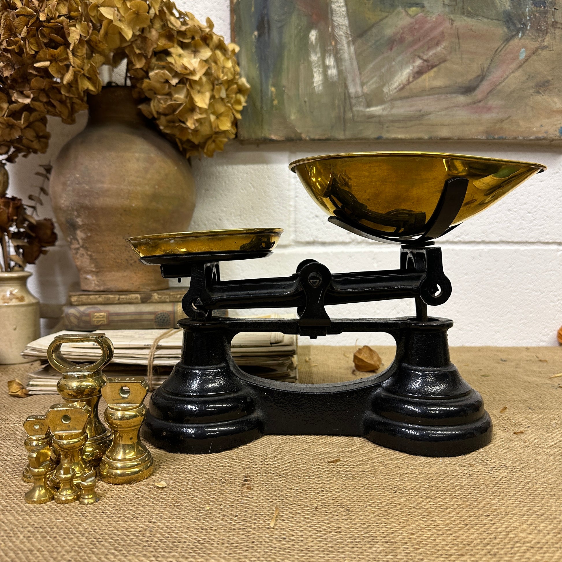 Great pair of black & gold kitchen scales with set of weights. A truly wonderful piece of nostalgic kitchen decoration in amazing condition
