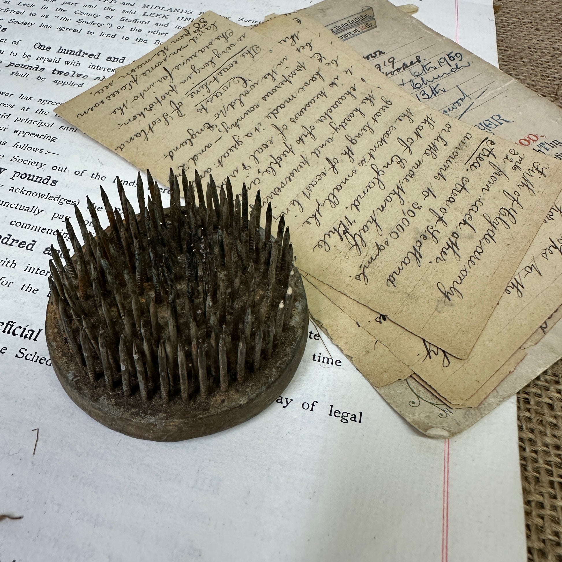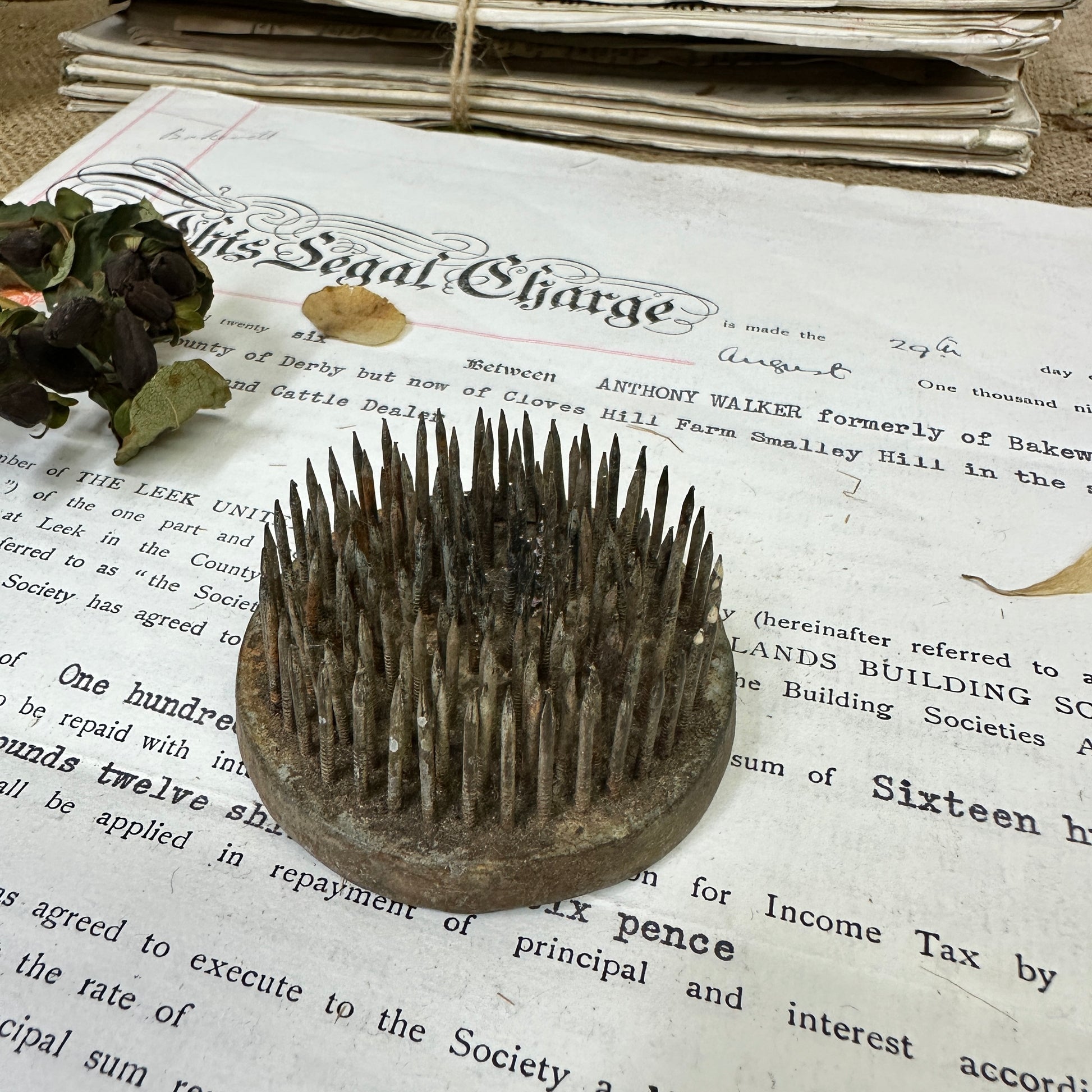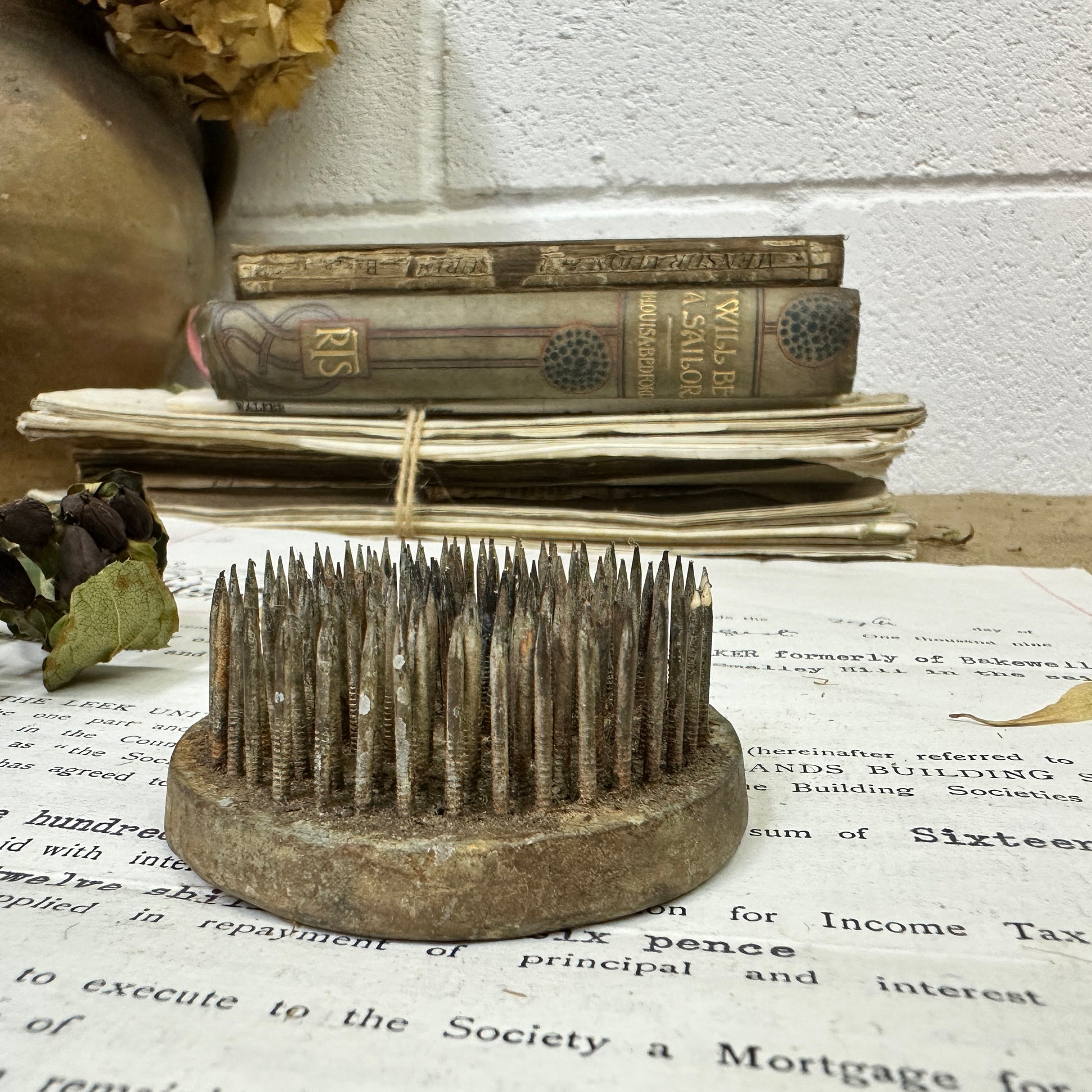 Flower frogs are small, often decorative, devices used in floral arrangements to hold flowers in place within a vase or container. They’re typically made of materials like metal, glass, or ceramic and come in various shapes and sizes. Flower frogs have a grid-like design with spikes or pins that help stabilize the flower stems, allowing for better control over the arrangement’s shape and structure. They’ve been used for many decades in flower arranging to create beautiful and well-organized bouquets.