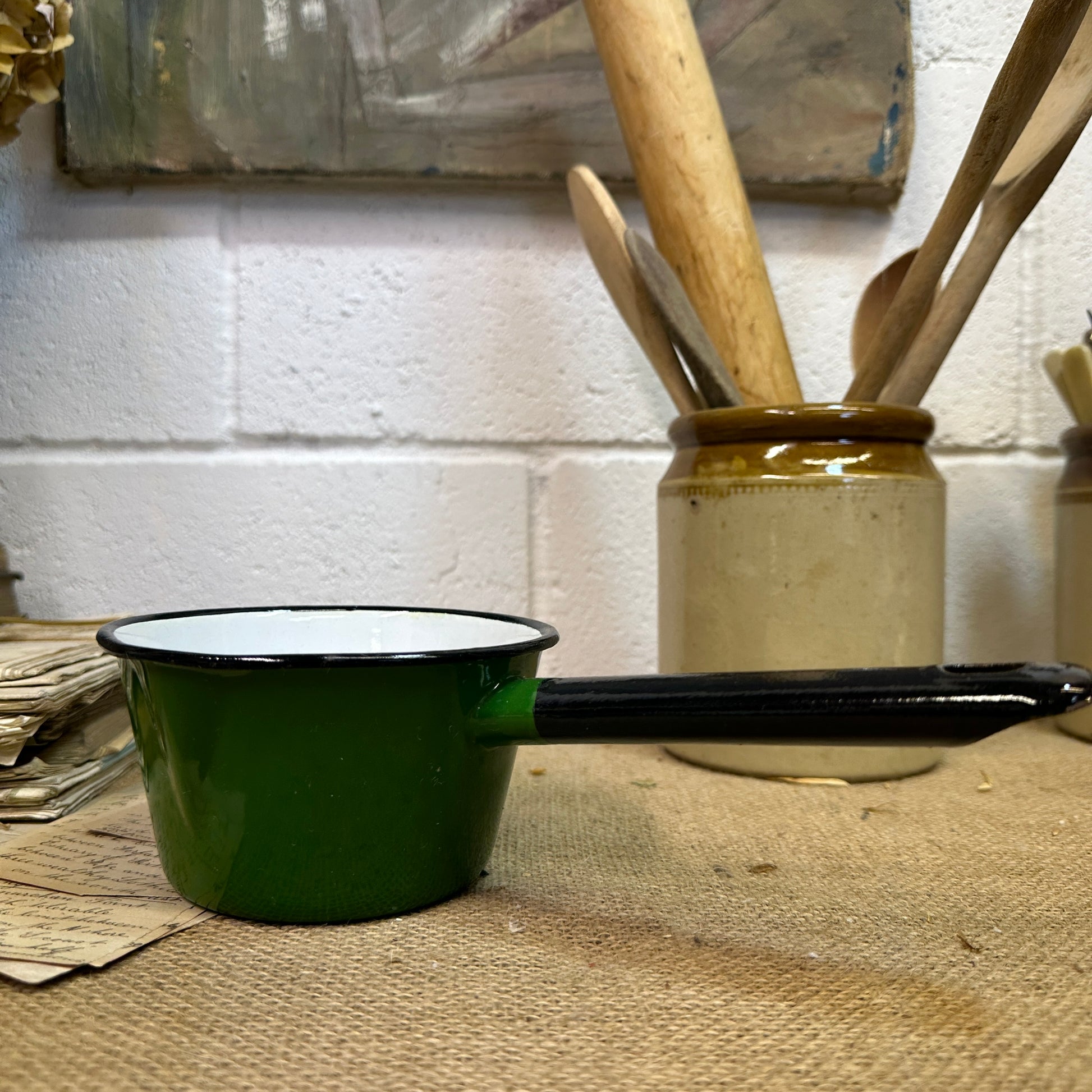 Vintage Green Enamel Milk Pan
