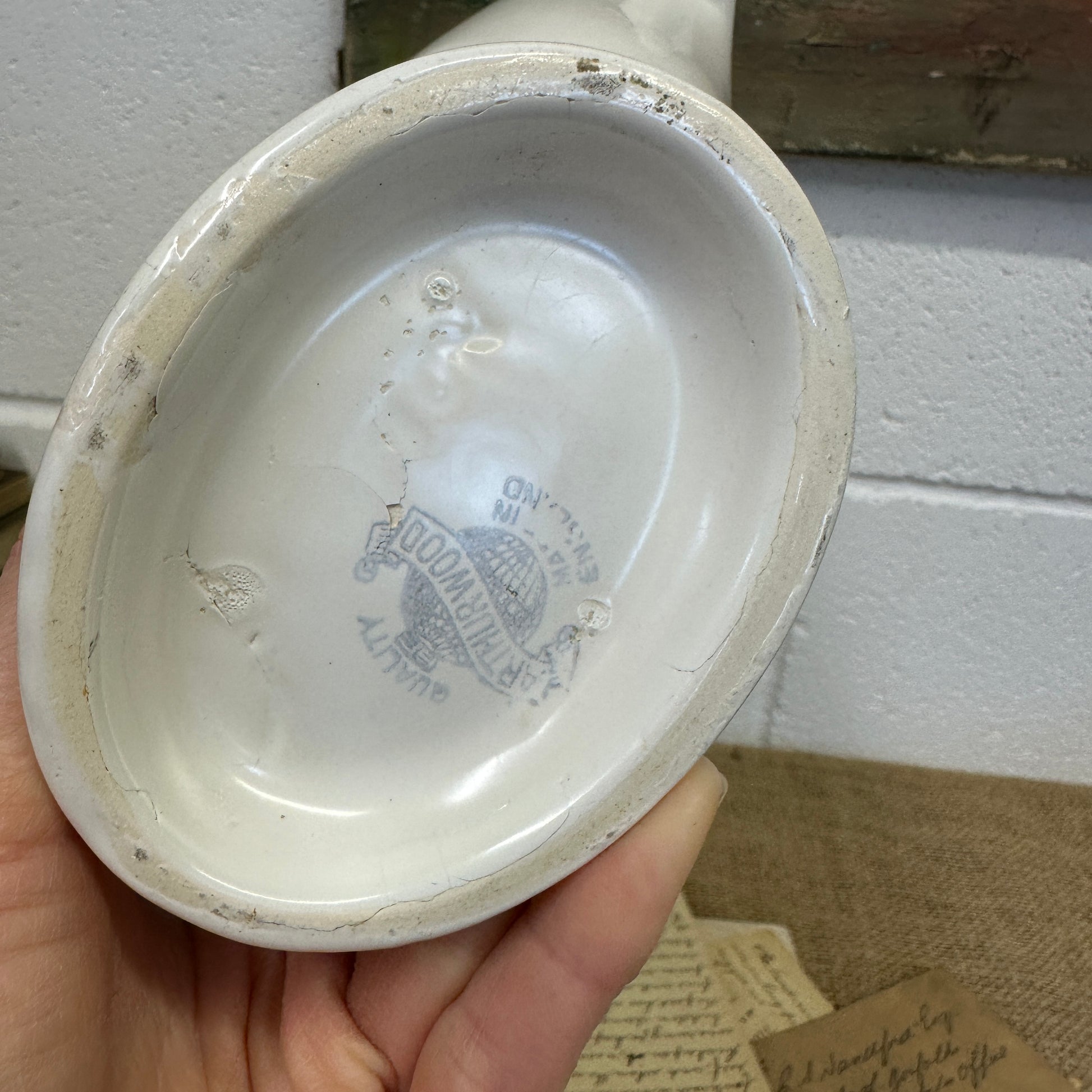 Stunning delicate white mantle vase made by Author Wood. Some crazing & a small hairline to the pottery due to age please see the picture